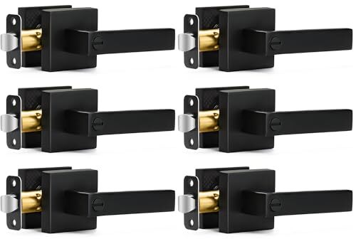 30 Days Return Policy Fast Delivery Trusted seller 6 Pack Matte Black Door Handles Privacy Door Levers, Keyless Interior Door Knobs Square Door Levers Heavy Duty Door Locks for Bedroom Bathroom, Reversible Flat Levers Product Description MODERN DESIGN: Simplistic line design looks bright and tasteful, giving you the sense of maturity,Suitable for a variety of decoration styles. Matte black finish is gentle and decent. It also gives you a smooth touch while enhancing the beauty of your room PREMIUM QUALITY: Heavy-duty door handle is made of premium quality zinc alloy and brass parts to rust-free in a high humidity environment. The door lever has a thick and smooth black color powder coating for long-lasting product life PRIVACY FUNCTION: The privacy door levers can be locked by twisting the button inside and opened outside in case of emergency with a flat-tipped tool such as a screwdriver or coin, ideal for use with bedrooms, bathrooms or offices, etc EASY INSTALLATION: All door handles are reversible and can be installed left-handed or right-handed. Privacy door handles come with all accessories and included installation instructions to help you complete the simple installation of the door handle lock in less time. Each of door handle is packaged separately to avoid scratches caused by collisions during transit ADJUSTABLE LATCH: Black door knob have adjustable universal latch - 2-3/8"(60mm) or 2-3/4"(70mm). Fits door thicknesses of 1.38"(35mm) to 1.78"(45mm). Dimensions: Lever Length: 4.6" (116mm), Rosette Diameter: 2.4" (61mm). Note : The square plate of the latch is unremovable Shipping Returns Payment Shipping Shipping is FREE to all addresses other than APO/PO boxes in the lower 48 states. All our stock ships from US-based warehouses. Shipped via USPS or UPS (depending on location and package weight) Unless stated otherwise, all orders will ship within 24-72 hours of your payment being processed. Check our feedback to see the great reviews of FAST shipping we offer. Returns As our valued customer, we will do our best to make sure the product you receive arrives to you on time and as expected. If you are not satisfied with your purchase, please contact us within 30 days of receiving your order to process a return. Payment We currently accept payment via eBay managed payments only. Once payment is cleared, we will dispatch your shipment within 1-3 business days. Please refer to the "Shipping" tab for more information regarding shipping speed to your destination.