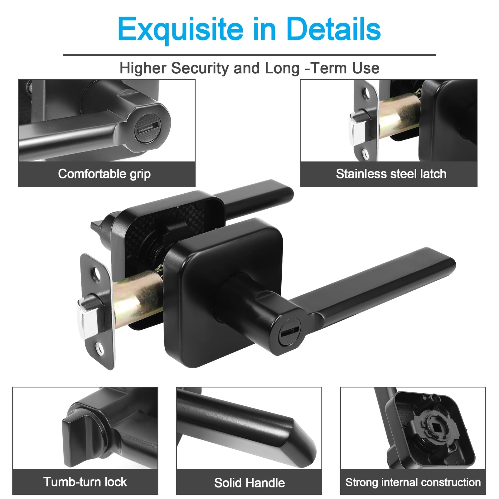 Rounded Corner Design: More suitable for your home style. Rounded corner appearance for a more comfortable and rounded grip, no scratching, subtly enhancing the residential experience Privacy Function: For privacy, the latch bolt can be locked from interior door knob with a thumb-turn button. Unlock from exterior handle keyless with a coin or card in case of emergency. Don’t worry about being locked accidentally Premium Quality Hardware: This door handle lock is made of good quality zinc alloy and brass, good durablity and corrosion proof, rust proof in humid situation. Solid handle provide anti saw protection. The surface smooth, no fading, extend the service life of the black door knobs Wide Applications: The modern door knob has two ways 45 rotation, flexible opening. Artistic finishes bring an elegant to your home. Suitable for bathrooms, conference halls, bedroom, for both commercial and residential use US Standard Strike Plate: Allow to replace your door knob with lock without rework on the door frame. Fit Doors Thickness: 1-3/8" to 1-3/4"(35 to 45 mm). Adjustable Latch: 2-3/8" to 2-3/4" (60 to 70 mm) Easy Installation: This door lever lock includes all accessories and installation instruction, you can quickly install it just a few minutes. The black door knob is reversible to left and right, suitable for both left and right door opening