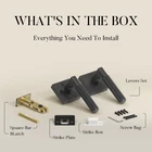 Keyless Convenience & Seamless Privacy:Experience a new level of ease with our innovative keyless privacy door handle. A simple press of the internal button gives you instant access to your private space, eliminating the need for keys. And if you're ever locked out, just use a standard screwdriver to unlock it from the outside — for ultimate peace of mind. Designed to complement any room, our black square door handle add a modern touch to everything from bedrooms to bathrooms. The sleek matte black finish enhances your space with a contemporary feel that matches a wide range of interior décor. Whether you're creating a relaxing bedroom retreat or a chic bathroom entry, these door handles bring both style and functionality to the table. Quick & Easy Installation:Upgrading your doors has never been easier! Our square door handle are designed for hassle-free installation, and with just a screwdriver and simple instructions, you can install them in minutes. No need for professional help or complicated tools — transforming your space is a breeze Perfect Fit for Every Door:Our privacy door knobs interior are designed to fit a wide range of doors. With a 2-1/2” x 2-1/2” mounting plate for secure installation and an adjustable deadbolt that works with 2-3/8” (60MM) or 2-3/4” (70MM) backsets, they accommodate door thicknesses from 1-3/8” (35MM) to 1-3/4” (45MM). Plus, the fully reversible door handle lock makes them ideal for both left- and right-handed doors. Built for Durability & Elegance:Crafted from premium materials, our privacy door knobs are designed to stand the test of time. With a smooth, matte finish and solid construction, these handles offer smooth operation, long-lasting durability, and a touch of sophistication to any space. Security and style go hand-in-hand.