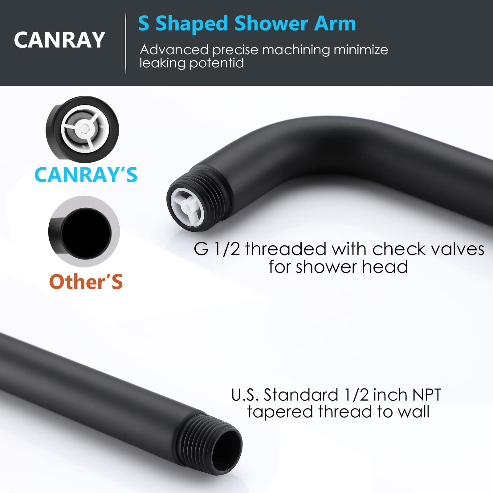 Easy Way To Get Extra Height - Shower head extension arm can extend 13 inches length and raises 5 inches higher of your existing shower head, ensuring more flexible rainfall space. This was a must for tall people to get better shower experience. Hassle-Free Installation - This shower neck pipe has a 1/2 NPT Tapered Threads, which is the standard U.S. size tapered threads, ensuring easy and fast installation. Build to Last - The shower head riser pipe is made of 304 stainless steel, which is corrosion and oxidation resistant. Matte black paint is remarkably forgiving. It can keep the surface clean and produce a velvety finish. Part - The 13 inch s-shape shower arm extension is a versatile product that can handle any kind of shower head you’d like to throw at it. It’s a good setup for rain showers, but it’s also great for placing a fixed head in the middle of your shower. The half inch tapered male fittings and plumber's tape allow you to create a water-tight seal that won’t leak at all. (Tape had been Included) Buy with Confidence Now - We are committed to the best service for you, so if you have any questions about our shower head for tall people, you can us by , and we will give you a satisfactory answer within 24 hours.