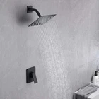 Bathroom shower faucet set in a sophisticated matte black finish that resists corrosion and tarnishing, ensuring a long-lasting aesthetic appeal. Constructed with a solid brass valve body, this shower faucet set offers exceptional durability and reliability. It meets California CEC standards with a flow rate of 1.8 GPM (6.8 L/MIN), model S3210DI-SS from Sumerain. This complete shower faucet set includes a rough-in valve, an 8" SUS304 stainless steel square rain shower head, shower arm, single handle, escutcheon, and all necessary accessories for a seamless installation experience. Designed for compatibility with standard 1/2" U.S. plumbing connections (1/2 NPT), this shower faucet set allows for easy installation, reducing labor costs and time. Featuring a drip-free MS ceramic cartridge, this shower faucet has been tested to remain drip-free after 600,000 uses, providing peace of mind and efficiency. Product Description This SUMERAIN Matte Black Shower Faucet Set combines modern design with functionality, featuring sleek angular lines and a bold finish that enhances any bathroom decor. Crafted from high-quality materials, including solid brass and stainless steel, this faucet set is built to withstand the rigors of daily use while maintaining its stylish appearance. The matte black finish not only adds a contemporary touch but also ensures resistance to corrosion and tarnishing, making it a reliable choice for years to come. The included 8" square rain shower head delivers a luxurious shower experience, providing ample coverage and a refreshing flow of water. With a flow rate of 2.2 gallons per minute, this faucet set is designed for efficiency without compromising performance. Whether you’re renovating your bathroom or upgrading your shower experience, this faucet set is easy to install, and we recommend reviewing the installation video available on the product page for guidance. Model: S3210DI-SS Product Name: Shower Faucet Set Material: Brass, Stainless Steel Finish: Matte Black