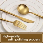 Timeless Circular Design : Matte gold silverware set's round head design is simple but not simple, and elegant design is never out of date. Ergonomic design makes tableware easy to use. Superior Durability : This set of tableware uses enough high-quality stainless steel raw materials and vacuum environment-friendly titanium plating technology, which makes it not easy to fade, bend and durable. It can accompany you for a long time. Update Your Silverware : Investing in tableware is a very meaningful thing. If you are willing, then a good set of tableware will make you feel happy and increase your appetite when eating. Use And Care:This stainless steel silverware set is dishwasher safe. Careful maintenance can make silverware look like new every time it is used. If you wash by hand, please don't clean it with hard objects and dry it with a soft cloth after each cleaning. Customer first : If you have any questions before or after use, you can contact us directly, and we will reply and deal with them as soon as you see the message. high-quality and timely after-sales service will escort your shopping.