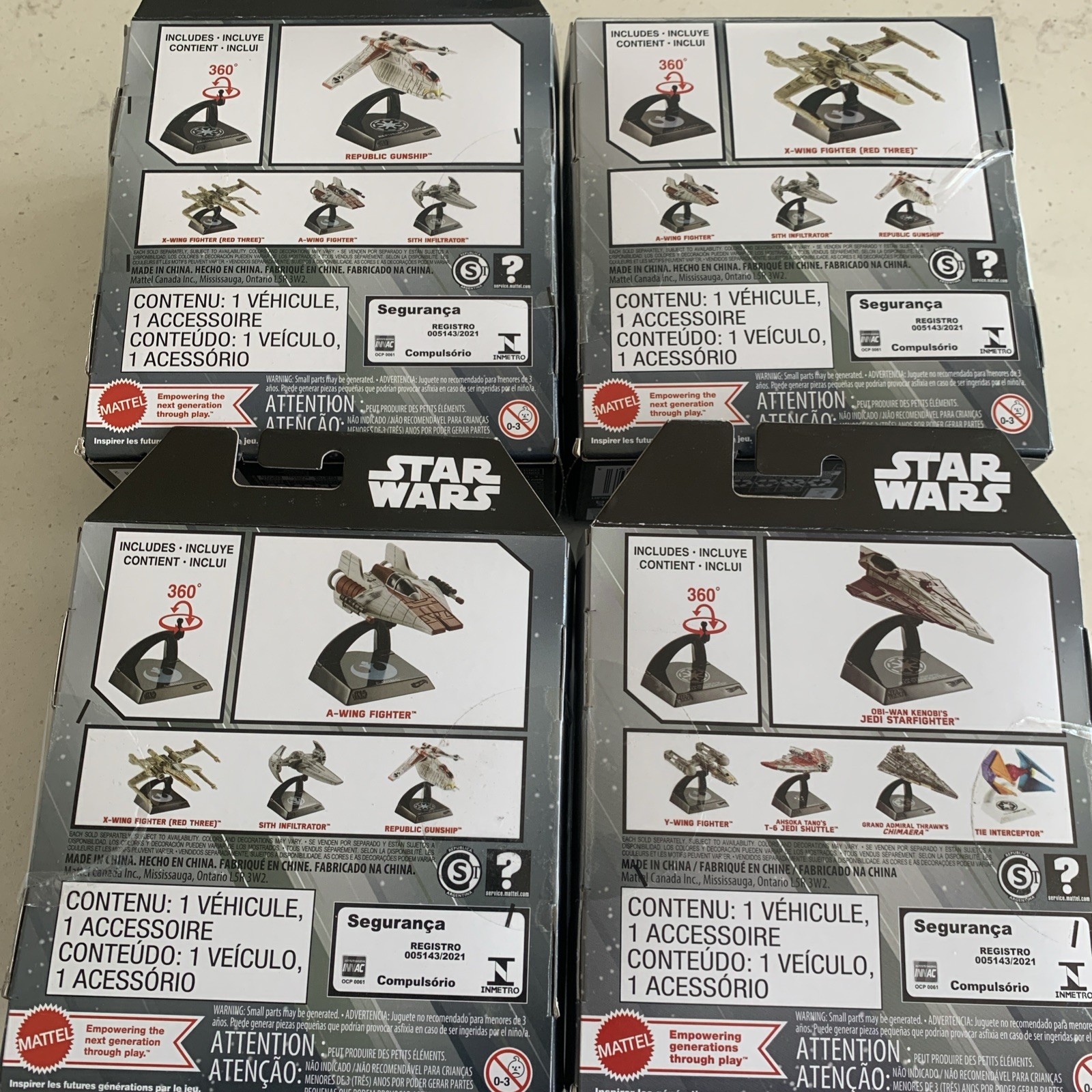 The product is a set of 4 Mattel Hot Wheels Die-Cast Star Wars Starships, featuring various designs from the Star Wars universe. Each starship is made of die-cast material and is part of the Hot Wheels Star Wars series. The vehicles are in a 1:64 scale and come in a colorful multi-color design, making them a collectible item for fans of both Hot Wheels and Star Wars. This set is a must-have for any die-cast vehicle enthusiast or Star Wars collector.