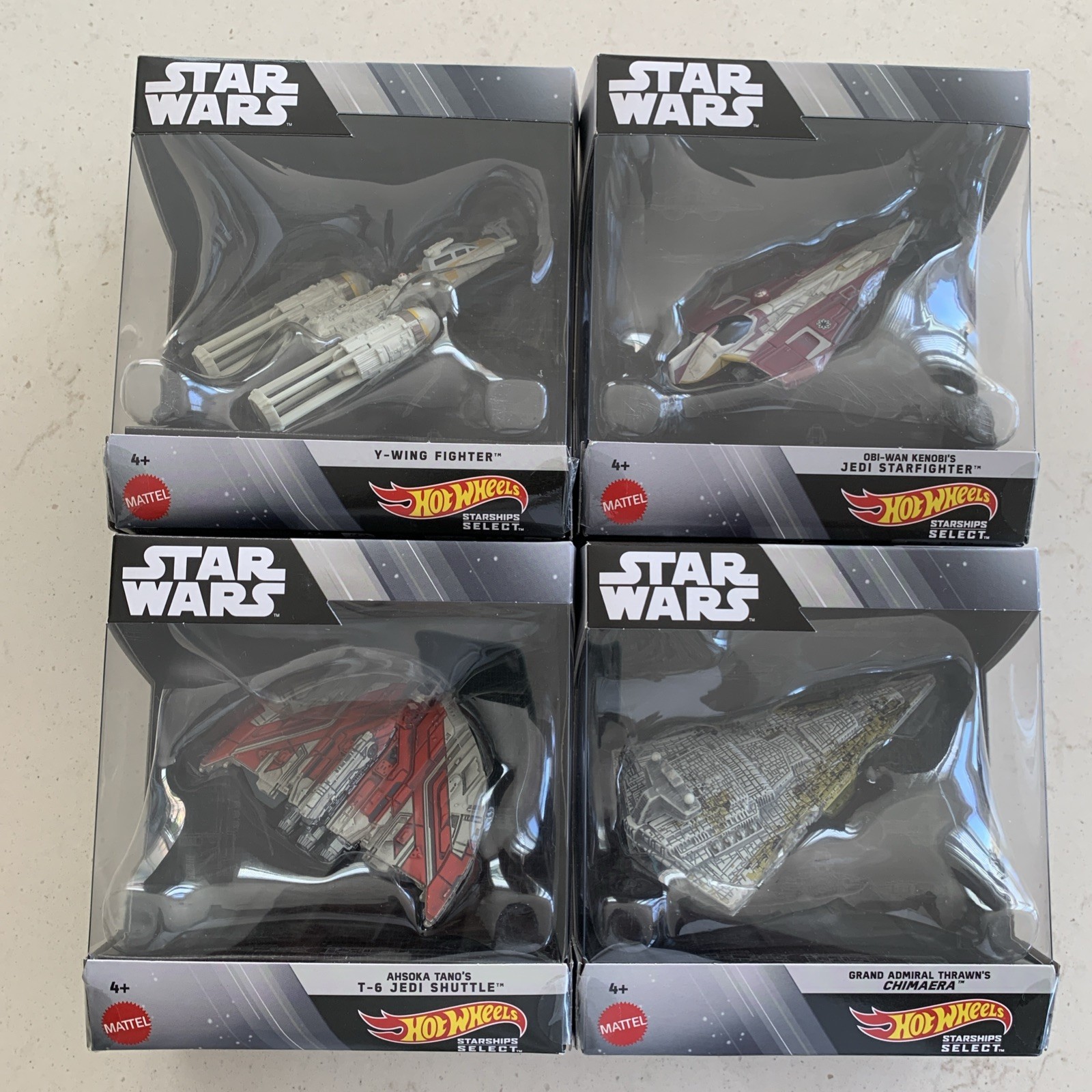 The Mattel Hot Wheels Die-Cast Star Wars Starships Select Set of 4 features Star Wars-themed starships in colorful 1:64 scale die-cast construction. Each model includes a stand and comes in an unopened box, suitable for boys and girls aged 4 and older. This set of Mattel-branded vehicles is part of the Hot Wheels Star Wars series, making them a must-have for any Star Wars fan or collector. Made in China, these models showcase iconic Star Wars characters and ships, perfect for imaginative play or display.
