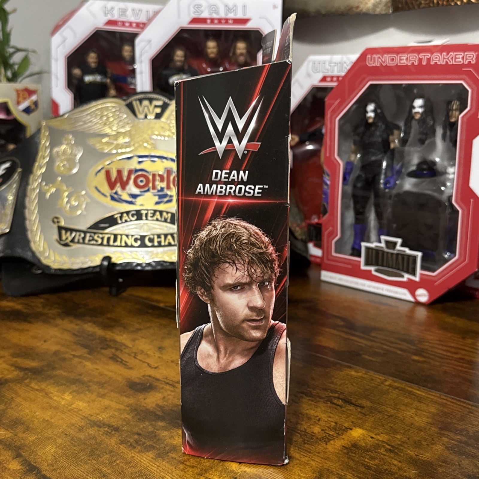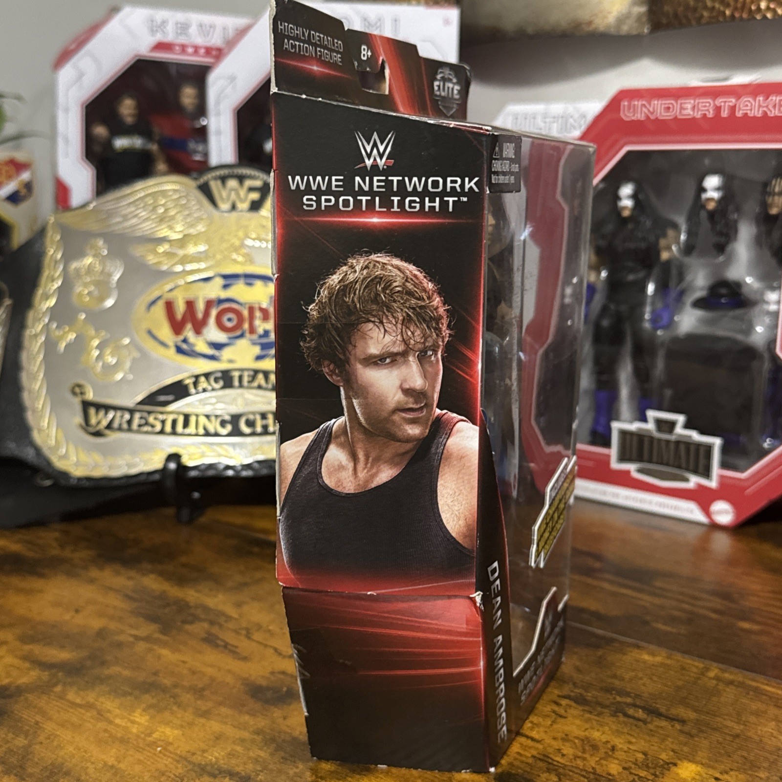 The product is a Mattel WWE Elite Network Spotlight Series DEAN AMBROSE action figure, featuring the character Dean Ambrose from the WWE franchise. This 2016 release comes in a 1:12 scale and includes a belt accessory. Packaged in its original packaging, this exclusive action figure is part of the WWE Elite Collection product line. Perfect for wrestling fans and collectors, this item captures the essence of the WWE TV show with detailed features and high-quality design by Mattel.
