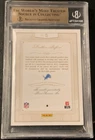 This is a rare and highly sought-after Matthew Stafford 2014 Flawless Emerald trading card, graded 9.5 by Beckett Grading Services (BGS). The card features the Detroit Lions quarterback in his original team and is part of the 2014 Panini Flawless set. This sports trading card is a must-have for any collector or fan of the National Football League (NFL). It is a parallel/variety card, with a print run of 5/5, and includes memorabilia and an insert. Don't miss your chance to own this exceptional piece of sports history.