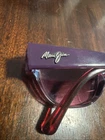 The Maui Jim Anini Beach Sunglasses feature a pink frame with Maui Rose polarized lenses, offering gradient, anti-reflective, and tinted properties. The oval-shaped sunglasses are designed for unisex adults with a beach theme and vintage style. Made in Italy, the lightweight plastic frame includes features such as polarized lenses and a temple length of 135mm, providing both style and functionality for sunny days by the water.