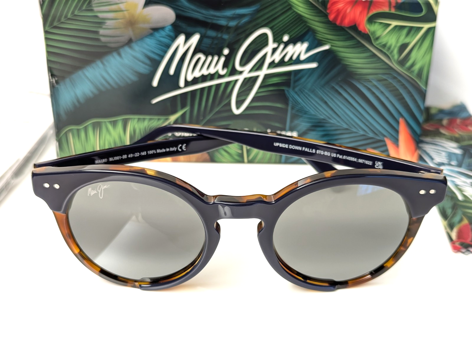 NEW Authentic Maui Jim Upside Down Falls Navy Tortoise Round Frame with Maui Neutral Grey Polarized Mirrored Lens Sunglasses MJ861-08 Discontinued!! Frame & Lens Made in ITALY 100% Brand: Maui Jim Model: Upside Down Falls MJ861-08 Made in Italy 100% Gender : Unisex Frame Material: Acetate Frame color: Navy Tortoise Lens Color: Maui Neutral Grey Lens Effect: Polarized, Anti-reflective, Mirrored, Gradient Lens Material: ST Glass ( SuperThin Glass) Italy Made UV Protection: 100% UV Protection Eye Size (width / height): 49 mm / 46 mm Bridge/Temple Length: 22 mm / 145 mm Package Includes (Item in Pictures): *New Maui Jim Sunglass with tags in Maui Jim Box *New Maui Jim Trifold protective case *New Maui Jim Microfiber cloth *Manual *Item ships protected in box regardless of shipping method used. Return Policy-Domestic: Free for 30 days, no questions asked. Return Sunglass & all items undamaged including (plastic wrappers, barcode tags, boxes, sunglass arm/temple covering,..etc.) received with order for full item cost refund. *All Order Shipments/Returns get inspected & recorded. *If Satisfied with your purchase & overall transaction, leave a Feedback and we'll do the same. Please let us know if you have any questions. *Does not Ship to Europe including the United Kingdom.