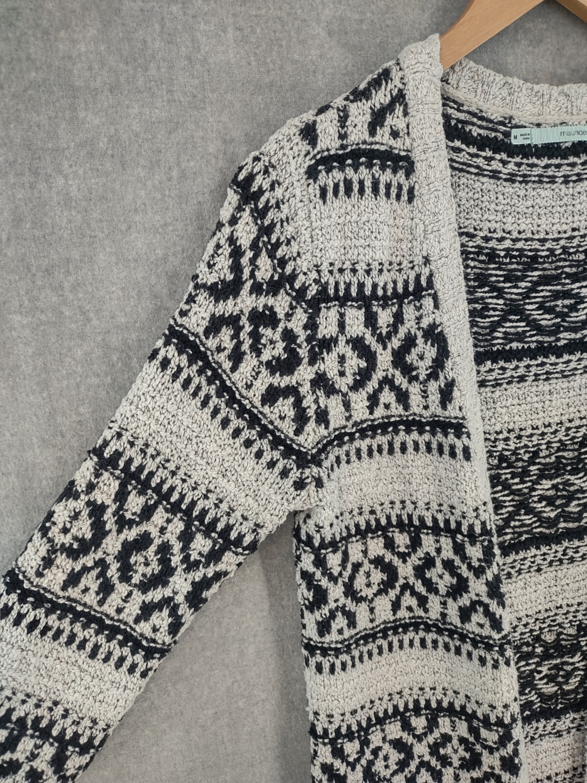 Welcome to Aspen Crossing, your destination for modern western bohemian style reflecting the rugged beauty of our American West. Maurices Sweater Womens Medium Western Bohemian Open Tribal Cardigan Black Ivory Long Sleeve Duster 34" LENGTH: Measured from the top of the shoulder to the hem. 19.5" CHEST WIDTH: Underarm to underarm, measured flat from left to right. Long Sleeve It is always best to compare the measurements above with a top that fits you comfortably. CONDITION - Excellent pre-owned condition. All items are cleaned per EBAY standards. Not spot treated. See the photo gallery to view this items measurements and condition. SHIPPED - USPS First Class Mail unless item weight requires priority mail. RETURNS accepted, must be returned within 30 days in original condition to receive a full refund. SHIPPING AND HANDLING We ship all packages within five business days Monday through Friday except Holidays. Consolidated shipping is available for multiple purchases. Thank you for helping our planet and buying previously owned and loved items. I am grateful for your business. Enjoy! Check out our eBay store and follow us. There are new listings daily. CUSTOM SKU: Disclaimer: While we make every effort to capture the most accurate depiction of every item when photographing, colors may vary from screen display to in person therefore we cannot guarantee exact shade on any item. Message us if you have questions.
