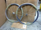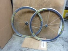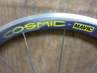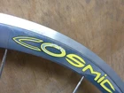 Up for bid is a set of excellent condition 1st generation Mavic Cosmic Pros from mid 90's The front is very mint. There may have been some very light glue spots in two areas as if for a display bike. I got the front around 20 years ago and just let it sit at work gathering dust and grime. Virtually no brake wear or even marks. Any imperfection is shop grime or maybe the slightest shop wear. Unfortunately both dust caps cracked. I got the rear wheel slightly used, also very very minimal brake wear. Decals may have some minor wear from cleaning glue of wheels. Both wheels almost perfectly true and no wheel hop. Note the wheels came from different batches of anodizing, so it's a shade off from being a perfect color match. Aero + sew up + not flyweight wheels equal very very fast TT wheels ask any real experienced rider, not internet heros. Campy 8 speed freehub, I have a nice 13-23 cassette I 'll throw in. Gewiss Gatorade Buckler PDM Team Campagnolo Shamal $65 shipping to US locations Thanks for looking