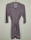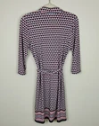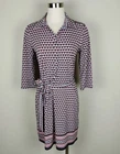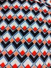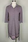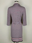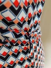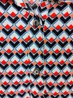 Beautiful geometric print in white, red, blue, and orange in a knit fabric features a matching fabric self tie belt. Button front from neck to waistline, coordinated border around bottom, thread belt loops, spread collar, and 3/4 sleeves. Spare button still attached. SIZE: Small COLOR: Blue, white, red, orange MATERIAL CONTENT: 95% polyester, 5% spandex STYLE: 5906W50 CARE: Machine wash CONDITION: Excellent pre-owned condition with no fading, stains, pilling, or holes/tears. Please see photos for details. FLAT MEASUREMENTS (approximate) Underarm to Underarm: 19" Shoulder to Hem: 36" Sleeve Length: 18" Waist: 17" Hip: 20" Form measurements: Bust 35", Waist 24", Hips 35" If you have any questions, please don’t hesitate to ask. Thanks for viewing our listing! Career, office, modest, fitted, church, classic