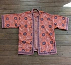 Max Studio Womens Open Front Kimono Blouse Size Small Max Studio blouse features a coral/pink floral pattern with kimono sleeves and an open front design, boho hippie style. polyester material,. 3/4 sleeve length. Machine wash Great for all occasions. Size small -generous cut 23 inches from armpit to armpit 29 inches length 10 inch arm opening