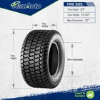 【Parameter】Tire Size: 23x10.50-12", Tire Load Range: 4PR/B, Tread Depth: 0.38"/9.8mm, Rim Width: 8.5", Section Width:10.4"/264mm, Overall Diameter: 22.8"/579mm, Max Load: 1320lbs@20psi. Non-Highway service. 【Feature】The tread is made to give you better traction on grassy surfaces, especially on hills where the potential for slippage exists, The design will greatly reduce the damage to your lawn. 【Compatibility】23x10.50-12, 23x10.5-12, 23x10.5x12 tires is widely used on many kind of lawn mower, riding lawn mower, lawn tractor, garden tractor, garden tractor pulling, Golf Cart , farm equipment,various grass cutting equipment. 【Package Include】Set of 2 23x10.50-12" lawn mower tire. Tire only - Wheel not included.【Kindly reminder:In this case, purchasing a quantity of 1 means you will receive a pair of tires. However, due to the large size of this tire, we will deliver this pair of tires to you in 2 packages 】 【Note】Prior to purchase, please check the size of the original tire on your vehicle to ensure the size of the tire to be purchased is correct.(23x10.50-12)