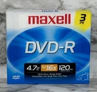 Maxell DVD-R Blank Discs 4.7 GB 120 Minutes 3-Pack With Jewel Cases NEW SEALED I ship next business day, but sometimes same business day and Saturday if order is paid for early enough. Please let me know if you have any questions. I am open to offers!! Feel free to look at other items in my store! Thanks!