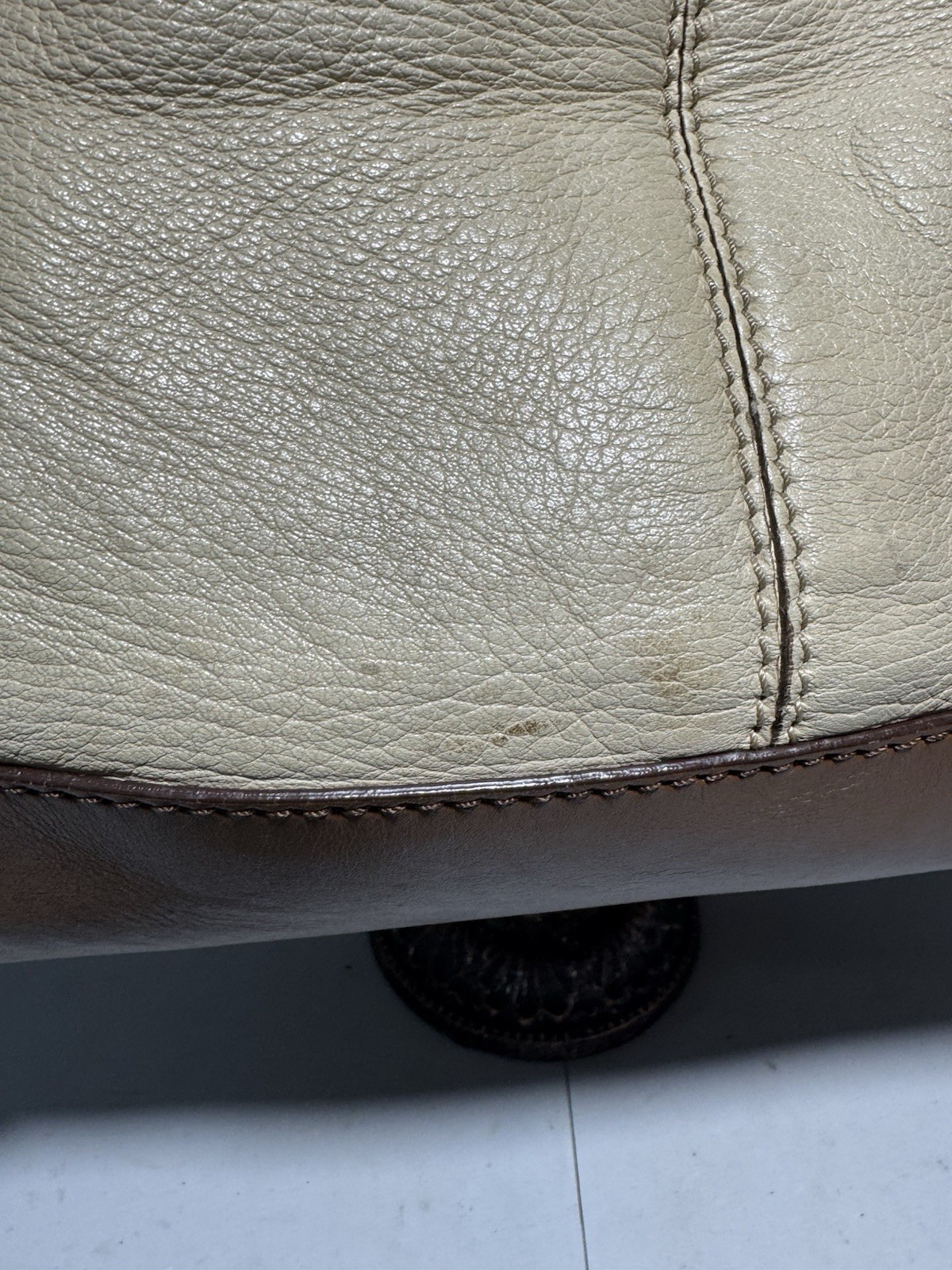 Crafted with precision, the Maxmara Margo Handbag is a testament to Italian craftsmanship, offering a blend of functionality and elegance. The bag features a durable leather exterior in a versatile beige hue, complemented by a sleek black leather lining. Its medium size, measuring 13 inches in width and 9 inches in height with a depth of 7 inches, makes it spacious enough to carry your daily essentials with ease. Attention to detail is evident in the bag's design, which includes a secure zip closure, gold hardware accents, and a comfortable leather strap in black, ensuring both style and practicality. The Maxmara Margo is an ideal accessory for those who appreciate a touch of luxury and a colorful theme, all while enjoying the quality and reputation of the Max Mara brand.