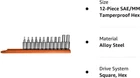Mayhew Tools 16021 SAE and Metric Tamper Hex Socket Bit Set, Chrome Plated, 12-Piece