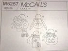 McCall's Crafts Sewing Pattern M5257. Factory Folded Uncut Pattern with Instructions in English and Spanish. Copyright 2006 Seasonal Door Hangings. Pattern and instructions to make 15-1/2" X 12" snowman, 16" X 13-1/2" bunny, 11" X 13-1/2" flower bucket, and 16" X 14" pumpkin door decor. Purchased supplies, trim, notions and accessories. Mails With Tracking To U.S. Addresses - Combined Shipping For More Than One Purchase Orders Mail Same Day or Next Except For Post Office Holidays & Sundays ~HAPPY SEWING & CRAFTING~