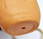 This is a vintage McDonald's Chicken McNugget Buddies toy from 1988, featuring the character Corny who is a popcorn vendor. This collectible item was part of a Happy Meal promotion in China and is a sought-after piece for fans of McDonald's memorabilia and Fast Food & Cereal Premiums.