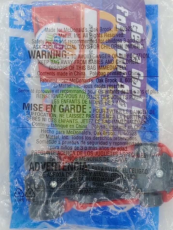 McDonalds Happy Meal Hot Wheels 2009 NEW Set of 6 SKU#100605 Look closely at the pictures to see further details. We ships USPS PLEASE see photos for detailed condition!! AC PLEASE LOOK AT THE PHOTOS CAREFULLY BEFORE PURCHASING!! If you are purchasing more than one item from us and would like combined shipping, PLEASE request an adjusted invoice from us while still in the cart and BEFORE paying. eBay does not usually calculate combined shipping accurately and you might get overcharged. Please be aware that when we photograph items, we use lighting that will show the details well. Although we try to present the product as accurately as possible, the lighting may affect the overall look of the item by appearing lighter/darker or possibly a different hue than the actual item. Depending on the type of lighting you have in your home, there may be some differences between the photos and the actual item. If this is a concern of yours, please feel free to request additional photos made in natural lighting or ask for a more detailed description of the item PRIOR TO PURCHASE! PLEASE NOTE: We greatly appreciate your interest in our item for sale. We look forward to a pleasant, quick and satisfying transaction for everybody, so please note the following information before bidding. Thank you! ITEM DESCRIPTIONS: * We will try to describe items well and provide plenty of photos. Please review these carefully before bidding or purchasing. * Only the items pictured and described are what you will receive when purchased. * We will occasionally offer an item clearly marked "AS-IS". This means that we are not sure if it works because we are unable to test it for whatever reason. We will offer these at a discounted price then a similar "working" item. It is possible that these items will work fine, but it also is possible that these items are more useful for their parts. Please only bid on or purchase these items if you are well aware of this, as we will only provide refunds of actual item price (no shipping cost refunds) for these items. * If you have any questions that aren't addressed by the descriptions or photos, please feel free to ask before you bid. * There may be bends, dents or parts of the blister that have minor issues due to long term storage. Such things will be pointed out under the description, please look closely at the pictures for further details. SHIPPING: * We usually do not offer shipping to international addresses, but ARE WILLING TO TAKE CONSIDERATIONS. * We try to pack items as carefully as possible, but damage may occur during shipping. If you receive an item that was damaged in shipping, please contact us and we will work with you to resolve the problem. * We will combine shipping costs for all items the same buyer purchases from us within 2 days. Please wait to pay for items until you're done shopping with us. Please contact us if you're expecting to buy more items from us, or to have us adjust the shipping costs. * We will usually ship items out within 24 hours of payment being received Sunday through Friday at noon. We will notify the buyer if there will be a delay in shipping for some reason. Please allow additional time for holidays and weekends when the post office is closed. If payment is received after noon (EST) on Friday, the item might not be shipped until the following Monday. * We do try to recycle shipping materials as much as possible. RETURNS: We abide by eBay's Money Back Guarantee. We definitely want our customers to be happy with their purchase! You may return an item within 30 days of receiving it with the following guidelines: * If the item is defective or damaged (unless we clearly marked the listing "AS-IS"), the buyer will receive a full refund after the buyer returns it and it is received by us. Customers who falsely claim their item is defective, damaged, or not as described in order to receive a full refund and free return shipping will be permanently blocked from making future purchases from us. * If the item is as described (including "AS-IS" items) and the buyer decides for any other reason than defective/damaged to return it, only the actual price of the item will be refunded once it has been returned and it is received by us. The buyer will be asked to pay all original and return shipping charges. This includes all reasons other than defective/damaged, including wrong size, wrong type, changed mind, etc. All "AS-IS" items will fall into this category of return. Please make sure the item is what you want before purchasing it. * Please contact us before initiating a refund request. FEEDBACK: We always leave feedback at the end of transaction. We consider the transaction to be over when we receive feedback from the buyer confirming the item arrived satisfactorily. If you are unsatisfied with your purchase please contact us before leaving neutral or negative feedback. WE APPRECIATE POSITIVE FEEDBACK IF YOU ARE SATISFIED WITH YOUR PURCHASE! THANK YOU FOR YOUR INTEREST IN THIS ITEM! !