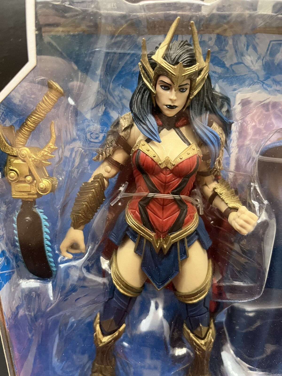 The DC Multiverse 7" Dark Knight Wonder Woman action figure by McFarlane Toys is an original, licensed reproduction of the featured character from the Justice League movie. The figure is made of plastic and metal, and is 7 inches tall with adjustable features and clothes. It comes in its original packaging and is part of the DC Multiverse product line. The figure is recommended for ages 12 and up and is a 1:12 scale model. Brand new factory sealed, collect them all!