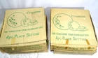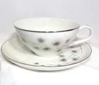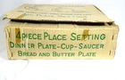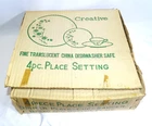 VTG NIB Creative Fine China Japan 1014 Platinum Starburst 4 Piece Place Setting Literally found in Grandmas basement. 4 boxes of unused, brand new, Mid Century Modern Starburst dish sets. All sets include dinner plate, salad plate, saucer, and teacup. The boxes were opened so dishes could be inspected. They are in the same perfect condition they were in the day they were purchased. Dinner plate is 9 1/4" across Bread and Butter Plate is 6 1/2" across Saucer is 5 3/4" across Teacup is 3 3/4" across cup part and stands 2" tall. All Measurements are approximate.