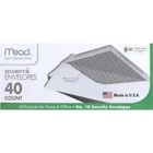 Product Description Each #10 envelope measures 4 1/8" x 9 1/2" for mailing standard letter size documents. These Mead envelopes feature a security lining to maintain privacy of documents. All-purpose 20 lb. white envelopes are perfect for home or the office. 40 envelopes per box. SFI® Certified Sourcing. From the Manufacturer Keep prying eyes off your important documents with this No. 10 security envelope with a security tint. The printed lining for privacy is ideal for sending confidential mail. Diagonal flap is fully gummed for secure seal. Each envelope is 20 lb. #10 size envelopes measure 4 1/8" x 9 1/2" for mailing standard letter size documents Security lining to maintain privacy of documents Mead all-purpose 20 lb. white envelopes are perfect for home or the office 40 envelopes per box Made in the U.S.A. SFI Certified Sourcing