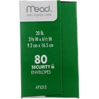 Product Description Mead 6-3/4 Security Envelopes. Keep sensitive information confidential. Keep prying eyes off of your important documents with this number 6-3/4 security envelope. It has a printed lining for privacy, so it''s ideal for sending confidential mail, and the V-flap is fully gummed for a secure seal. Each envelope is constructed from 20-lb. bond paper. The 6-3/4-inch style and size is best for checks and brief notes. From the Manufacturer Keep prying eyes off your important documents with this No. 6.75 security envelope with a security tint. The printed lining for privacy is ideal for sending confidential mail. Diagonal flap is fully gummed for secure seal. Each envelope is 20 lb. White envelopes with security lining ensure privacy 6-3/4 size envelopes measure 3-5/8" x 6-1/2" 80 envelopes per box. Customizable: No 20 lb. paper. Made in United States