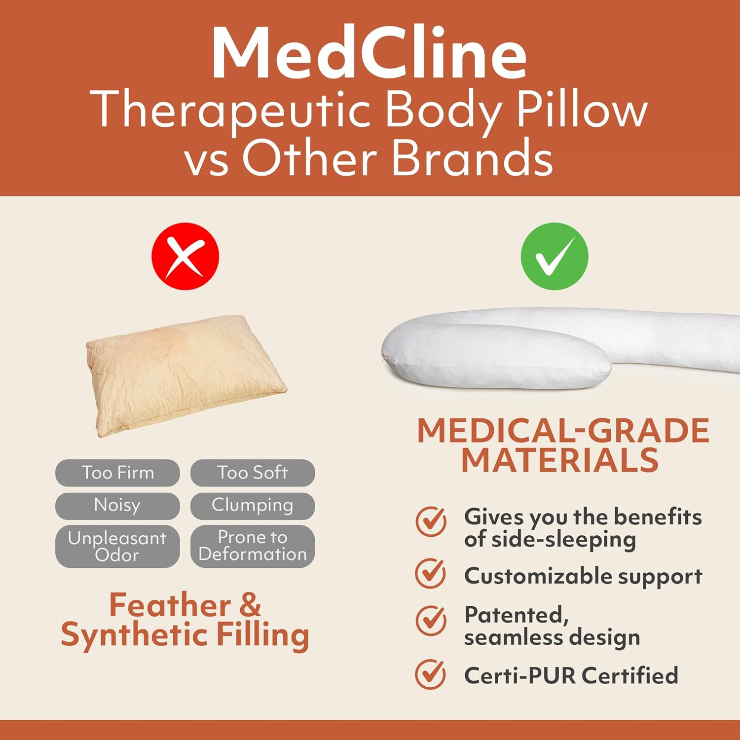 Store New Arrivals Add to Favorite View Feedback Contact Medcline Therapeutic Full Length Body Pillow, Adjustable Shredded Memory Foam Pillow for Side Sleepers, J-Shaped Body Pillow for Neck, Back, and Hip Support, Removable Washable Cover, 22"X50"X6" Description Unit Count 1.0 Count Style Body Pillow Size 1 Count (Pack of 1) Color White Pattern Solid Product Dimensions 50"L x 22"W Material Cotton Global Trade Identification Number 00854992005266 Item Firmness Description Medium Firm Item Weight 9 pounds Shape Semicircular Use for Back Material Feature Breathable Age Range (Description) Adult Recommended Uses For Product Sleeping Fill Material Memory Foam Number of Pieces 1 Special Feature Adjustable,Removable Brand MedCline Product Care Instructions Machine Wash Manufacturer Amenity Health Blissful Sleep with the Perfect Body Pillow: Designed to provide optimal support, the MedCline body pillow is ideal for side sleepers. Filled with adjustable shredded memory foam, it molds to your body, creating a comfortable position that supports conditions that benefit from side-sleeping, such as snoring, sciatica, lower back discomfort, and pregnancy-related aches. Stay in Position All Night with Ease: This J-shaped side sleeper pillow ensures a steady, supported position throughout the night. Perfect as a leg pillow for side sleeping or for those needing a reliable pillow for side sleepers with neck or shoulder pain, it transforms how you rest. Dimensions: 22” W x 50” L x 6” H. Patented Design for Personalized Comfort: Featuring a seamless and ergonomic build, the shredded memory foam body pillow contours to every body type. Whether used as a long pillow for bed or a side sleeper body pillow, it provides support and reduces pressure points for a restful night's sleep. Breathable, Washable Cover for Effortless Care: The MedCline full body pillow includes a plush, machine-washable cover, ensuring your side sleeper pillow for adults stays fresh and comfortable night after night. Ready for Relief Right Out of the Box: Compressed for convenience, this body pillow expands quickly to its full size, providing restful support for side sleepers and those seeking a body pillow for adults. Any mild memory foam scent fades within 72 hours, ensuring a fresh and relaxing experience. Product description The video showcases the product in use. The video guides you through product setup. The video compares multiple products. The video shows the product being unpacked. medcline body pillow Merchant Video 1 FIND YOUR FIT 2 BENEFITS 3 FIND RELIEF 4 FSA/HSA Can the MedCline body pillow be used on either the left or right side? Yes, MedCline products are designed so that you can sleep on your left or right side. Can I adjust the filling in the body pillow to my preferences? The shredded memory foam filling can be customized to your body, including creating a nest for your neck or adding the ideal support for your knees. If the stuffing migrates over time, simply fluff and shake back into place. What is the body pillow made of? Our body pillow is constructed with certified CertiPUR-US shredded memory foam. How do I keep my MedCline Body Pillow clean? The body pillow comes pre-installed with a plush cover that can be removed and washed. How is this body pillow different from others on the market? Our patented design eliminates all seams from the inner curvature of the body pillow so there isn’t anything uncomfortable pressing into your neck. ABOUT US We offer the best prices around on high quality products. Our E-store includes media such as books, movies, music and games while offering electronics, toys, sporting apparel, clothing, tools, general home, garden items and more. SHIPPING We are always working hard to ensure your package arrives as soon as possible. Please understand that some factors like weather, high postal traffic, and the performance of shipping companies are outside of our control. RETURNS We offer a 30-Day Return Policy on items which you are not completely satisfied with. You have the option for a full-refund or an exchange of the item. No returns are available on items shipped outside of the USA. PAYMENT We accept PayPal. CONTACT US This page content is yet to come Please ad us to your favorite seller and visit again later Thank You CUSTOMER SATISFACTION We try our very best to make sure every customer is completely satisfied. If there's a problem, message us! We're happy to help. WE ACCEPT Copyright © 2021 AutoDS. | All Rights Reserved