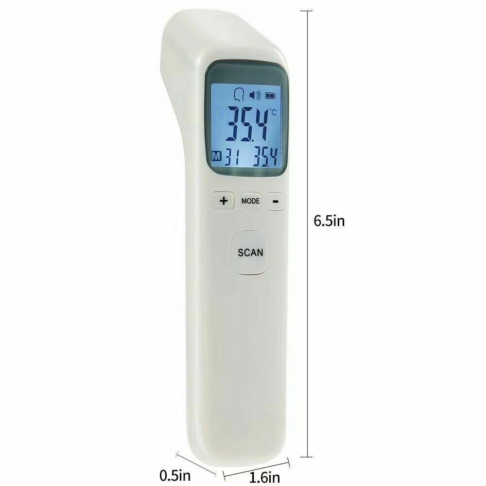 Product description Infrared Forehead Digital Thermometer, Temporal and Ear, Temperature Measurement for Adults Kids Infants and Baby, Accurate Instant Reading, Fever Alarm with Memory Function Product Features : Rapid temperature measurement: Simply point and activate, and within 1 second, results can be seen. 35 memory temperature readings Mute mode for readings for baby, infants, kids, and adults Temperature Alarm (default value is 100.4°F or 38°C) Measuring unit: Optional for Celsius ° / Fahrenheit ° Multi-function one key operation for body, object, forehead, and liquid temperature Automatic off function after 15 seconds Measuring Range: body mode: 93.2°F - 109.2°F or 34°C - 42.9°C Power by: 2 x AAA batteries (not included) Quick Start Guide °F/°C Switch: when the thermometer is on, press the "Mode" button about 2 seconds until F1 display , then press "+" / "-" button to switch between modes