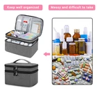 💥Large Double-Layer Pill Bottle Organizer, Perfect Option of Medicine Bag ✅● Double-layer design provides more spacious storage space, which can perfectly organize all your pills and other medical supplies, and also make it easy to classify different sizes of bottles and personal items. ✅● Portable size, sturdy handle, lockable dual-zipper design for Hassle-free travel. ✅● Size: 11 x 7.1 x 6.7 inches(pill bottles and other accessories are not included) Inner Structure of Medicine Bag 👉4(1 long + 3 shorts)removable internal dividers separates the main space into 5 parts, ideal for storing your pill bottles, medical supplements or emergency medical supplies;(4.2 inch in height) 👉4 Large elastic bands: fit 10-150ml bottles; 👉2 Medium Mesh pockets: fit 8 * 40ml bottles or 6 * 60ml bottles or 6 * 80ml bottles or 4 * 150ml bottles;(4.5 inch in height) 👉1 Small mesh pocket with magic tape: fits smaller pill cases; 👉1 Big mesh pocket with zipper: fit weekly pill organizer and other medical supplies 💝Pill bottle carrying bag could keep everything organized and is perfect for anyone who struggles to keep track of prescription medications and vitamins. Great gift for your families or friends on any festivals. 💊【Medicine Organizer Bag】-- The medicine organizer bag includes 4 removable internal dividers that separate the main space into 5 parts, ideal for storing your pill bottles, medical supplements, or emergency medical supplies. Additional design with 4 mesh pockets and 4 large elastic loops. Perfect for keeping all your pill bottles and other medical supplies organized. 👍【Double-layer Room】-- The top compartment provides extra space, and also classify medicine bottles according to their different use. Perfect for anyone who struggles to keep track of prescription medications and vitamins, and also perfect for in-home caregivers or nurses to do medicine organizing for clients. And this Medicine Bag is an ideal choice as Thanksgiving Day&Christmas Gifts send to old people. 💖【Durable & Safety Medicine Bag】-- This Travel Pill Bottle Organizer Bag is designed and made from soft and durable fabric, and the inner features PE foam filler for extra protection. Sturdy double stitching gives this medicine storage bag durability use. The top handle is portable to carry on the go. The two-way zipper design allows you to put in or take out emergency supplies easily. 😊【Dimension】-- L11" X W7.1" X H6.7". Pill bottle organizer bag solves the problem of medication clutter and saves you time and effort. Whether it is for home or travel, it’s the ideal choice for the storage of medical supplies. Clam-shell design allows the medicine box to stand upright on a counter when open for convenient view and access to contents. ✅【Travel-Friendly】-- Come with a portable hand strap, prepared for all situations and go anywhere without worry, perfectly portable and convenient. With a premium zipper, this compact medicine carrying case is durable and secure for quick access. The medicine bag is great for travel, camping, road trips, or vacation, the perfect size for a carry-on, and easily fits in any luggage.