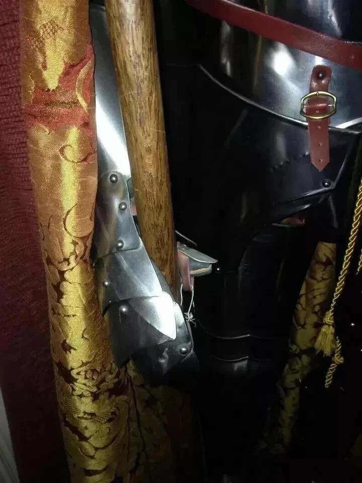 Medieval Knight Wearable Suit Of Armor Crusader Full Body Armour Suit Free Black Base & Iron Stand Spear, Shield and Cape Is Included With The Armor Please Note-(we Can make custom design on shield as per your choice ) Light Weight Armor & Its fully wearable and comfortably made. Premium quality well made Medieval Knight Suit Of Armor Size : XL Men's Metal : Steel - 20 Gauge Finish: As shown in Picture Full Size reproduction Handcrafted : Steel and Iron construction Weight with wooden base and stand: 25 kg (approx.) Made of high quality Steel & Iron 20 Gauge High Splendid Finishing. Best leather gloves inside. High quality leather straps. With beautiful on front side