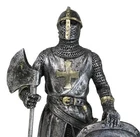 • This Medieval Crusader Knight With Axe Figurine measures 7.25" tall, 4" wide and 3" deep approximately. It weighs about 10 ounces. • This Medieval Crusader Knight With Spear Figurine is made of high quality designer resin. It is individually hand painted and polished. Because each piece is partially hand crafted, color tone may vary from pictures. • Experience the gallantry of the medieval era with our finely detailed figurine featuring a Crusader Knight in a Suit of Armor, equipped with a hand axe and a large shield. This meticulously crafted piece captures the essence of a knight prepared for close-quarters combat. The intricate details of the armor, the determined stance, and the formidable weaponry make this figurine a tribute to the bravery and strength of the Crusader Knights.