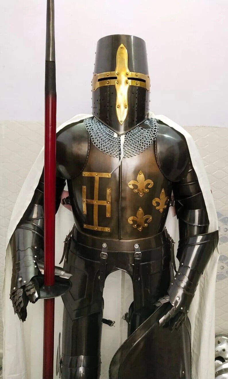 Description :Medieval Knight Suit Of Armour Templar Combat Suit Wearable Full Body Armor Suit Premium Quality Well Made Medieval Knight Suit Of Armor Metal : Iron Steel Finish: Finish As Shown in Picture Full Size Reproduction; An Impressive interior decor piece and collector item Wearable Suit This Armour Includes The Following: Complete Suit Sword Is Include With The Armour Suit & It Will Came Shield Is Include With The Armour Suit & It Will Came Cape Cloth Is Include With The Armour Suit & It Will Came Gauntlets Is Include With The Armour Suit & It Will Came This Armour suit can be worn or used for Display. Suit Is Fully Wearable Height: 200 cm - 79 inches Weight with wooden base and stand: 30" To 34" kg (approx.) :Quality Assurance Quality is a parameter where we make no compromises. The products that we offer to our clients are high in quality, beautifully designed and of high performance. : SHIPPING POLICY Delivery time is 5 TO 9 days from the date of purchase on working days. Remote areas or places or cities take up to 15 Days for shipment to be delivered. We Ship through ebay global shipping : Logistic Partner DHL Express, Fedex, Aramex and Small items is send through India post it take 10-12 days : NOTE--ALL CUSTOM DUTY WILL BE PAID BY THE BUYER : Returns Policy We accepted the return within 30 days money back or item exchange, buyer choose buyer pays return shipping. Returned item must be in original and unused condition; good must be in its original packing. : FeedBack We request our all buyers to please leave positive feedback. In case of any discrepancy arising out of our product, kindly do discuss it before leaving any Negative/Neutral Feedback. : Please also check our other items we are deal in bulk Thanks with Best Regards By : ALFA-HANDICRAFT Track Page Views With Auctiva's Counter Disclaimer : the colour you see may vary slightly from the actual colour of the product. Similarly, other slight variations may occur between the product displayed and the actual product.