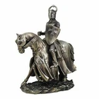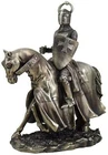 • This Knight Statue is made of polyresin undergoing a process of electroplation, resulting in a uniform coat of silver on the surface of the sculpture. • This Knight Statue measures approximately 8.5" tall, 9" wide and 4" deep. • Medieval knighthood is a major title to have in the age of kings. This particular knight is charging on an armored heavy cavalry horse. He is equipped with a suit of armor and a poleaxe. He is a fine sculpture to display on your shelves, desktops or what have you!