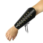 The Faux Leather Arm Guards are a perfect complement to any ensemble and are fitting for a variety of period looks. Featuring durable leather construction, these pieces are adjustable and provide a comfortable and secure fit. Great for costumes, collections, and reenactments. *Made of black Faux Leather - Feels Real to the Touch! Hand-made. Length of guards from the longest top part to the wrist is 10" *Great last-minute costume idea! Use for LARP (live-action role-playing), kids, cosplay, Halloween, fancy dress, theatrical props, and historical reenactments. *All Armor products are made from the finest materials with attention to providing intricate details in each piece *Armor is Fully Wearable and Comfortably made. String ties make it fairly adjustable to different arm sizes. Specifications: *Dimensions: L: 10in x W: 4in x H: 11in *Case Quantity: 60 Sets (of 2) Per Case *Weight: 0.55lb *Approximate Packing Measurements and Weight: -10" X 9" X 5" -2 Pounds
