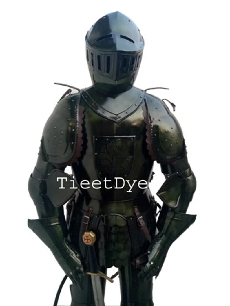 Medieval Knight Wearable Suit Of Armor Crusader Full Body Armour Suit Free Black Base & Iron Stand Sword Is Included With The Armor Light Weight Armor & Its fully wearable and comfortably made. Premium quality well made Medieval Knight Suit Of Armor Size : XL Men's Metal : Steel - 20 Gauge Finish: As shown in Picture Full Size reproduction Handcrafted : Steel and Iron construction Weight with wooden base and stand: 25 kg (approx.) Made of high quality Steel & Iron 20 Gauge High Splendid Finishing. Best leather gloves inside. High quality leather straps. With beautiful on front side This Armour suit can be worn or used for Display. Suit Is Fully Wearable Packing and Assembling Details We First Check Armour Suit 2 Time Before Packing So That There Is No Chance Of Any Problem And Damage Or Scratches And Then We Pack It , Little Assemble Requires It Will Not Take That Much Time To Assemble The Armour It So Easy If Any Problem Came We Will Send Video And We Will Help Our Buyer With Everything Little Assembly Required For Suit And Wooden Base We Will Share Video Links For Instruction if You Need Any Help Not Sold as an Antique This is Reproduction Handmade Product Made by Indian Handicraft We supply this armor Suit pre oiled for protection from rust. use this shield as a great Halloween costume please note : this is a hand-made item & slight difference in color and size are possible. We supply this armor pre oiled / greased for protection from rust. you are requested to please wipe this item with soft cotton cloth before start using it. and if you have no use this item then please re-apply simple mobile/lube on this item and pack it in a plastic bag. -Usage : Home Decorative,Desktop Decorative.Table Decorative Collectible Items -Packing : Packing In One Parcels. Corrugated Export Packing