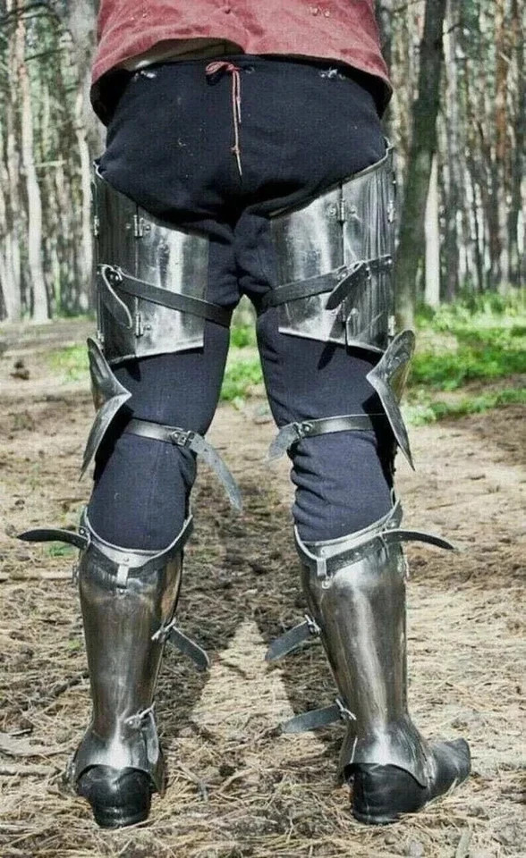 Product Descriptions Medieval Gothic Leg Armor Full 18 GA Steel knight Greaves Crusader SCA LARP Armor - Made of 18 Gauge Good Quality steel - Hand crafted - The all items are coated with rust-free paint from the inside. - All belts are made from thick, brown or black leather. - Edges of every item detail are carefully rolled. Custom size armor can order to us.