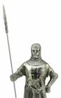 • This Crusader Knight Pikeman statue measures 7" tall, 3.25" wide and 2" deep approximately. With the spear installed, the figurine measures 9.5"H. The figurine weighs about 9 ounces. • This Crusader Knight Pikeman is made of high quality designer resin individually electroplated for an aged silver look. Because each piece is partially hand crafted, color tone may vary from pictures. • This Crusader Knight Pikeman works in service of the Church and his Faith in God. The Crusades were a series of religious wars sanctioned by the Latin Church in the medieval period, especially the campaigns in the Eastern Mediterranean with the aim of recovering the Holy Land from Islamic rule. Crusader knights wear a large cross on their battle uniform. They typically wear chain mail underneath for armor and a white surcoat with a large red cross over it. • This Crusader Knight Pikeman in an Ebros Gift exclusive collection.