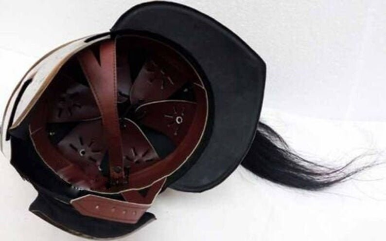Handmade Materials: Steel, Iron, Leather Spartan 300 movie helmet lerp /Renaissance Helmet - This exact replica is a beautiful gift item apart from the possibility of use at re-enactor fairs. it adds a vintage ambience, an aura of soberness to the office or to the study at home. Halloween Costume Helmet/Role Play Medieval Armor - Furthermore, it could turn out to be a warm-up for an extended conversation. As a decorative, it is an memorable gift for the discerning. Decorative Armor Helmet Specs - Inner Diameter : Front to back 9 inches (approx.) Ear to Ear : 8 inches (approx.) Circumference : 26 inches (approx.) Size : THANKS