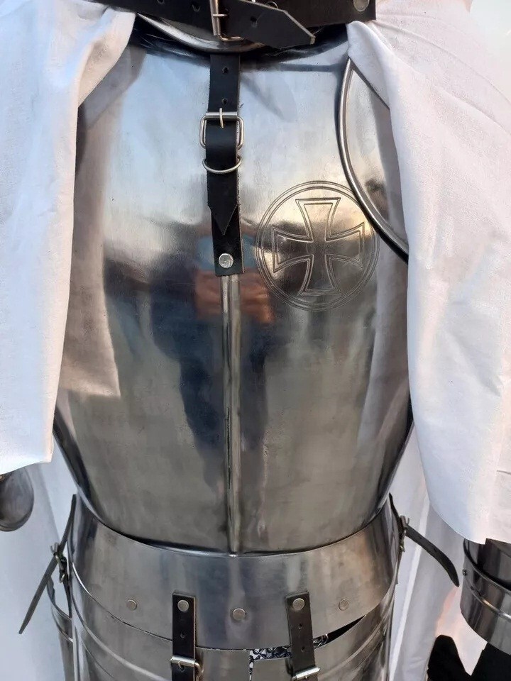Medieval Knight Wearable Suit Of Armor Crusader Full Body Armour Suit Free Black Base & Iron Stand Sword & Shield, Cape Is Included With The Armor Light Weight Armor & Its fully wearable and comfortably made. Premium quality well made Medieval Knight Suit Of Armor Size : XL Men's Metal : Steel - 20 Gauge Finish: As shown in Picture Full Size reproduction Handcrafted : Steel and Iron construction Weight with wooden base and stand: 25 kg (approx.) Made of high quality Steel & Iron 20 Gauge High Splendid Finishing. Best leather gloves inside. High quality leather straps. With beautiful on front side This Armour suit can be worn or used for Display. Suit Is Fully Wearable Packing and Assembling Details We First Check Armour Suit 2 Time Before Packing So That There Is No Chance Of Any Problem And Damage Or Scratches And Then We Pack It , Little Assemble Requires It Will Not Take That Much Time To Assemble The Armour It So Easy If Any Problem Came We Will Send Video And We Will Help Our Buyer With Everything Little Assembly Required For Suit And Wooden Base We Will Share Video Links For Instruction if You Need Any Help Not Sold as an Antique This is Reproduction Handmade Product Made by Indian Handicraft We supply this armor Suit pre oiled for protection from rust. use this shield as a great Halloween costume please note : this is a hand-made item & slight difference in color and size are possible. We supply this armor pre oiled / greased for protection from rust. you are requested to please wipe this item with soft cotton cloth before start using it. and if you have no use this item then please re-apply simple mobile/lube on this item and pack it in a plastic bag. -Usage : Home Decorative,Desktop Decorative.Table Decorative Collectible Items -Packing : Packing In One Parcels. Corrugated Export Packing