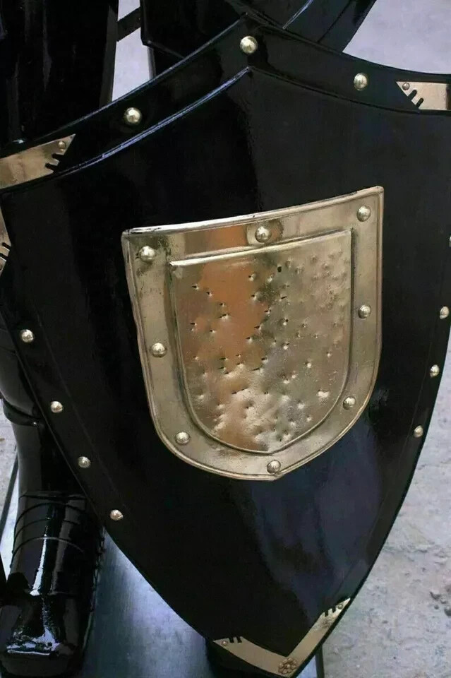 Medieval Knight Wearable Suit Of Armor Crusader Full Body Armour Suit Free Black Base & Iron Stand Spear, Shield Is Included With The Armor Please Note-(we Can make custom design on shield as per your choice ) Light Weight Armor & Its fully wearable and comfortably made. Premium quality well made Medieval Knight Suit Of Armor Size : XL Men's Metal : Steel - 20 Gauge Finish: As shown in Picture Full Size reproduction Handcrafted : Steel and Iron construction Weight with wooden base and stand: 25 kg (approx.) Made of high quality Steel & Iron 20 Gauge High Splendid Finishing. Best leather gloves inside. High quality leather straps. With beautiful on front side This Armour suit can be worn or used for Display. Suit Is Fully Wearable Packing and Assembling Details We First Check Armour Suit 2 Time Before Packing So That There Is No Chance Of Any Problem And Damage Or Scratches And Then We Pack It , Little Assemble Requires It Will Not Take That Much Time To Assemble The Armour It So Easy If Any Problem Came We Will Send Video And We Will Help Our Buyer With Everything Little Assembly Required For Suit And Wooden Base We Will Share Video Links For Instruction if You Need Any Help Not Sold as an Antique This is Reproduction Handmade Product Made by Indian Handicraft We supply this armor Suit pre oiled for protection from rust. use this shield as a great Halloween costume please note : this is a hand-made item & slight difference in color and size are possible. We supply this armor pre oiled / greased for protection from rust. you are requested to please wipe this item with soft cotton cloth before start using it. and if you have no use this item then please re-apply simple mobile/lube on this item and pack it in a plastic bag. -Usage : Home Decorative,Desktop Decorative.Table Decorative Collectible Items -Packing : Packing In One Parcels. Corrugated Export Packing