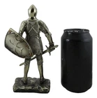 • This Medieval Crusader Knight Statue is made of polyresin, handpainted and polished individually. • This Medieval Crusader Knight Statue measures approximately 7" tall, 4.5" wide and 2.5" deep. The figurine weighs about 8 ounces. • Medieval knighthood is a major title to have in the age of kings. This distinctive looking knight is the Holy Roman Empire's elite crusader warrior. The Crusader Knight of the Cross is in full armor and carries a sword and shield. His shield bears the mark of the cross. • This is an Ebros exclusive collection. Coke can placed next to the statue is not included with the listing. It is meant to provide size perspective of the item. Ebros Holy Roman Empire Crusader Knight with Sword and Shield 7" Tall Figurine Video will open in a new window Using the mobile app? Copy this link into your browser: