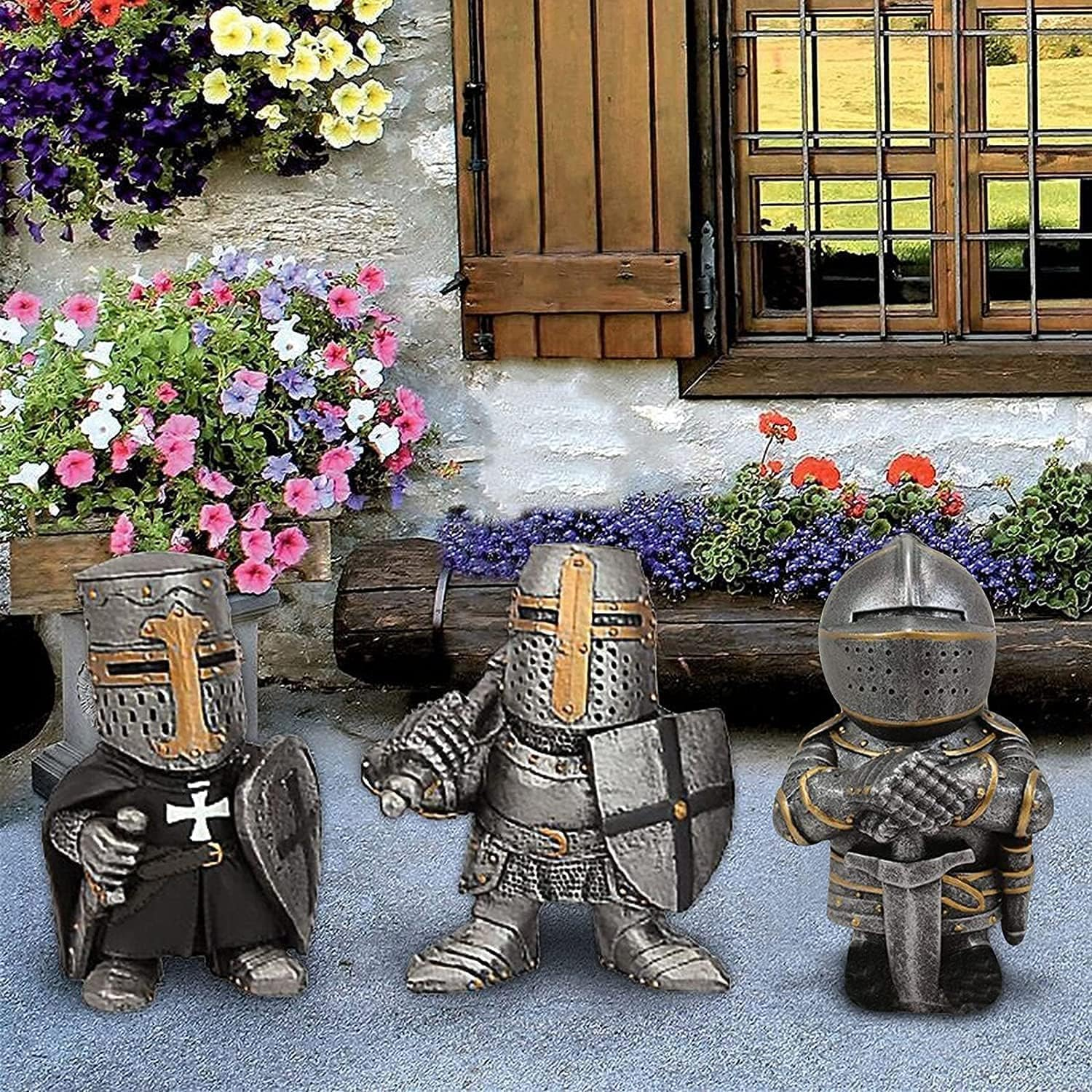 Gothic guardian dwarf decorations knight: In a garden kingdom, there lived 11 Gothic guardian dwarfs. Their duty is to protect the garden kingdom. One day, the flowers and plants in the garden began to wither, The dwarf guard began to think of ways to save the flowers and plants, and under the care of the gothic guardian dwarves, the garden kingdom was restored to its former vitality. Under the protection of the garden knight g-nomes, the garden kingdom becomes even more beautiful! Exquisite knight statue garden decoration: cast in high-quality resin, there are 11 different shapes of Knight G-nomes+Prop sculptures, each small knight statue is decorated with classic halberds and big helmets, designed in chibi animation style, and each knight sculptural has a unique personality and armor, the guard medieval prop will guard your home or garden well. Widely used: Decorative knights are perfect garden decorations for trees, flowers, flower beds, fences, and walkways in the garden. Knight Statue stands on your farm and lawn to protect the territory, place this guardian garden sculpture anywhere to add interest to your patio, garden, or backyard. Outdoor Statues Garden Decoration Gifts: Knight Ornaments for the outdoors is a good choice as a gift for your family and friends, Medieval Knight can enhance the atmosphere of the garden, these Knight Statues are Ornamentson birthday, Christmas, Easter, Valentine's Day, Thanksgiving, Independence Day, Labor Day, and more are unique gardening gifts for family, friends, and co-workers. Reliable after-sales: Gothic guardian dwarves are very suitable as outdoor garden decorations, hope the knight statues can bring you happiness and joy. If there is any problem with the product you received, please feel free to contact us, don't worry, we will solve it for you! Knight+G-nomes+Guard, Guardians Medieval Props Statue Decoration, Gothic Guardian Dwarfs for Garden Statues Outdoor Yard Lawn Decorations