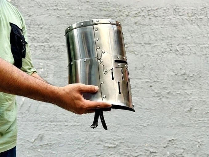 ⚔️ Key Features Authentic Medieval Design: Reproduction of classic Knight Templar helmets. Premium Steel Construction: 18-gauge mild steel for durability and lasting use. Fully Wearable: Full-face armor helmet for adult cosplay and reenactments. Comfortable Fit: Inner circumference 72 cm, ear-to-ear 21 cm, front-to-back 33.5 cm approx. Handcrafted Excellence: Each piece is carefully handmade in India. Perfect Gift: Ideal for history buffs, medieval collectors, and LARP enthusiasts. 🌍 Shipping & Delivery US Shipping: Free & reliable International Shipping: Free, with tracking included Estimated Delivery: 7–14 business days Customs & Duties: Buyer responsible for local import fees