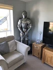 Replica ARMOUR Size - 6 FEET In Beautiful Finish Made of Good Quality Steel 18 gauge Steel All the items show in our image Sword Are Not Same Finish =Ant Finish This is full size suit of Armor and complete Height of this Armor is 195 cm approx Size of Wooden base is 65x60x17 cm Total Weight of this Armor is 42 Kg.with wood base Overall Length: Arm sections- 15 Inches, Pauldrons- 14 Inches Width: Arm sections- 5 Inches, Pauldrons- 13 Inches Weight: Arm sections-3 Lbs, Pauldrons- 2.5 Lbs Shield: 36" in height Fitment: All measurement of the armor part is Adult Sizes