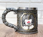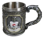 • This Medieval Crusader Knight Mug is made of high quality resin with stainless steel liner, individually hand painted and polished. Color Tone May vary from pictures. • This Medieval Crusader Knight Mug is 4.25" tall, 6.25" long and 4" in diameter. Mug has 14oz capacity. Hand Wash Only • This Templar Knight Mug is perfect for your halloween parties or any medieval related events! Imagine drinking out of this mug with your beer buddies, boating group or what have you! It is a great conversational piece and an awesome ice breaker! Made of high quality polyresin, hand painted and polished, this mug is topped with a stainless steel liner for safe drinking of both hot or cold beverages. • Because each piece is individually hand painted and polished, color tone may vary slightly from pictures. • Props in photos are not included with the mug.