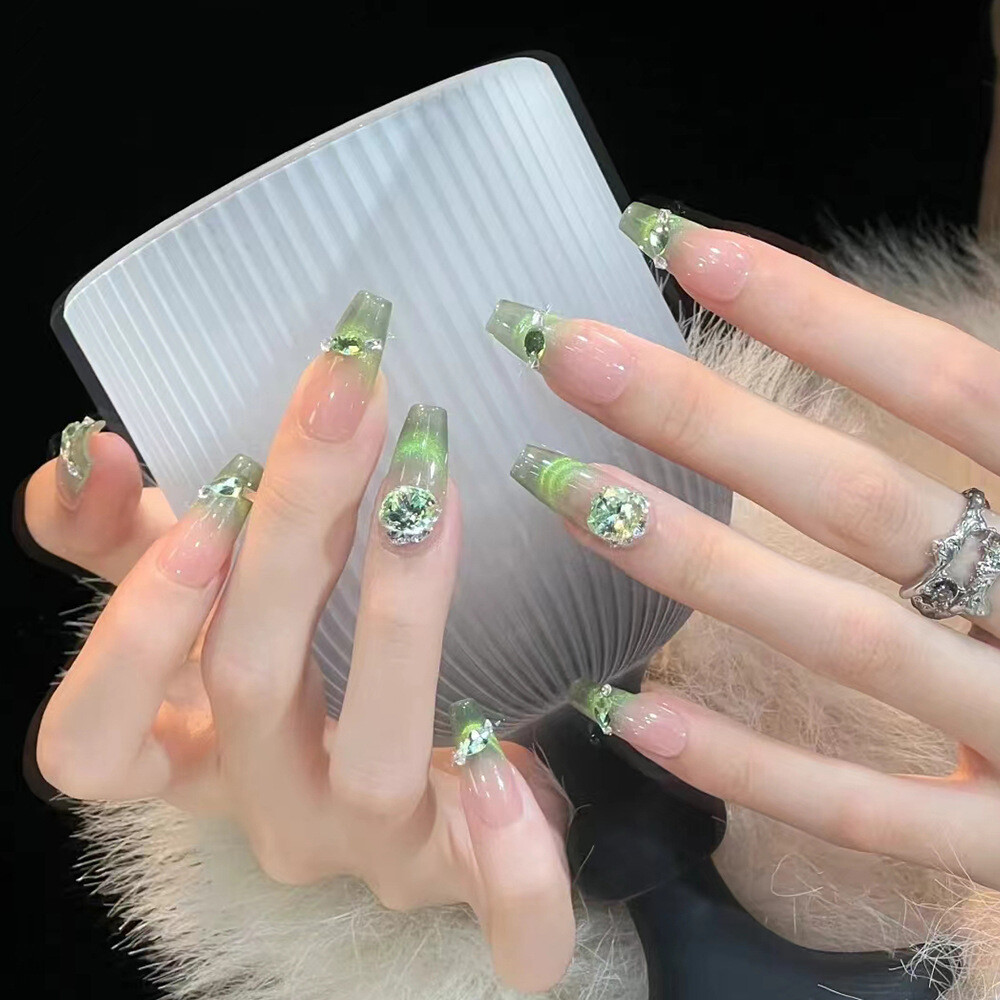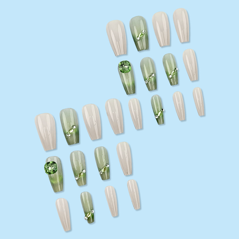 Effect: French Type: Press-On Nails Brand: Unbranded UPC: Does not apply Material: ABS Suitable For: Finger, Nail Art Color: Multicolor gtin13: Does not apply Shape: Coffin Theme: Diamonds Green Nail Size: Medium Country/Region of Manufacture: China