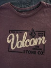 Medium Red Volcom Shirt. Primarily Red with the words "TRUE TO THIS", "SINCE 1991", "VOLCOM", and " THE ORIGINAL STONE CO." printed in the middle of the shirt. Very comfortable shirt to wear as it's light and breathable and compliments a muscular shape.