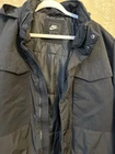 This medium-sized Nike APS Dri-FIT ADV Full-Zip Jacket in black is a versatile activewear piece for men. Made from 91% nylon and 9% spandex with a woven fabric type, it features a stand-up collar, long sleeves, and a hood for added warmth. The jacket has a full zip closure, pockets for convenience, and is adorned with the Nike logo. Perfect for walking and various athletic activities in the winter, fall, or spring, this Nike jacket from the Axis Performance System line offers both style and functionality.