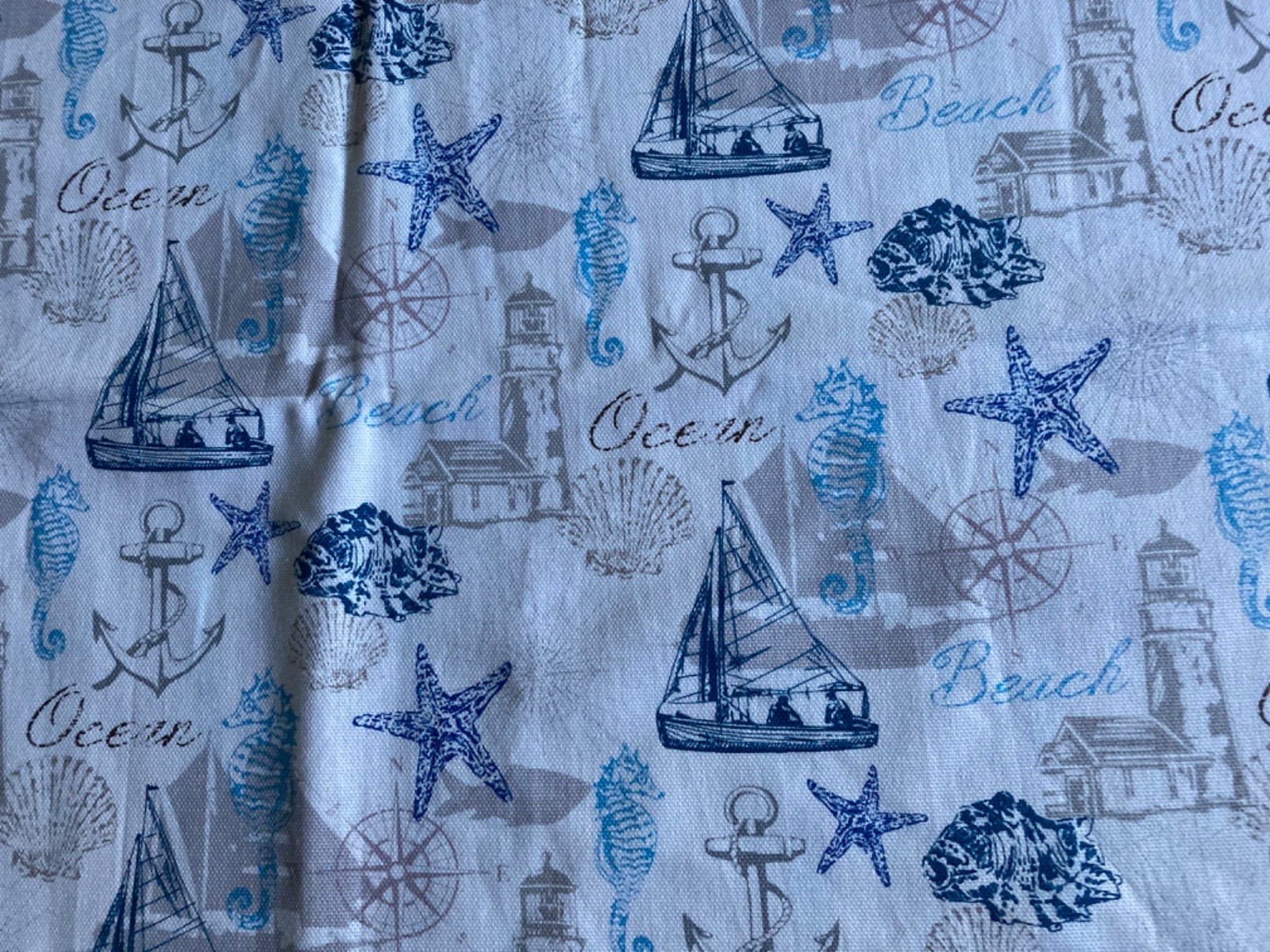 Medium weight cotton, New piece of cloth great for any sewing project, 38x44 inches Beach, Shore theme.